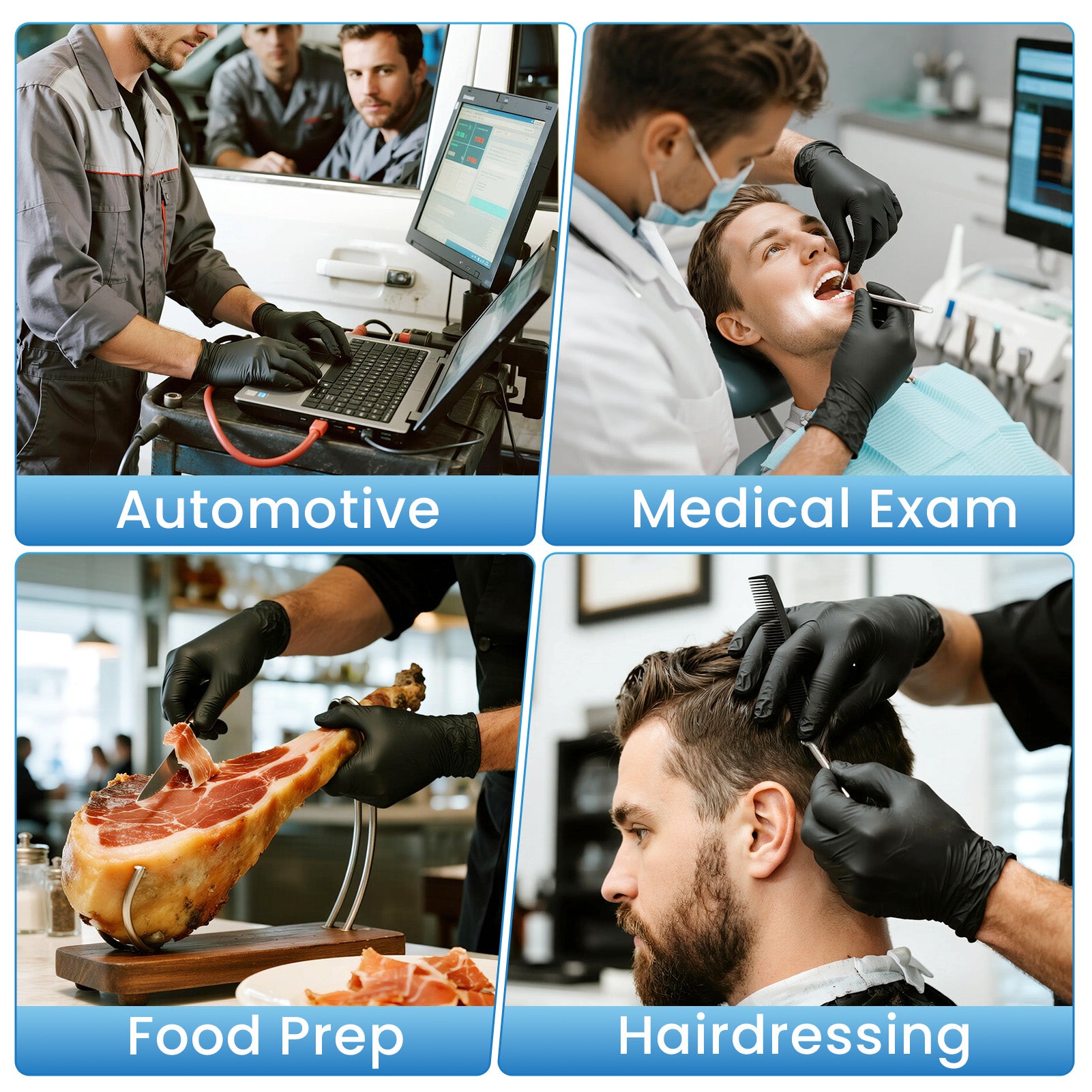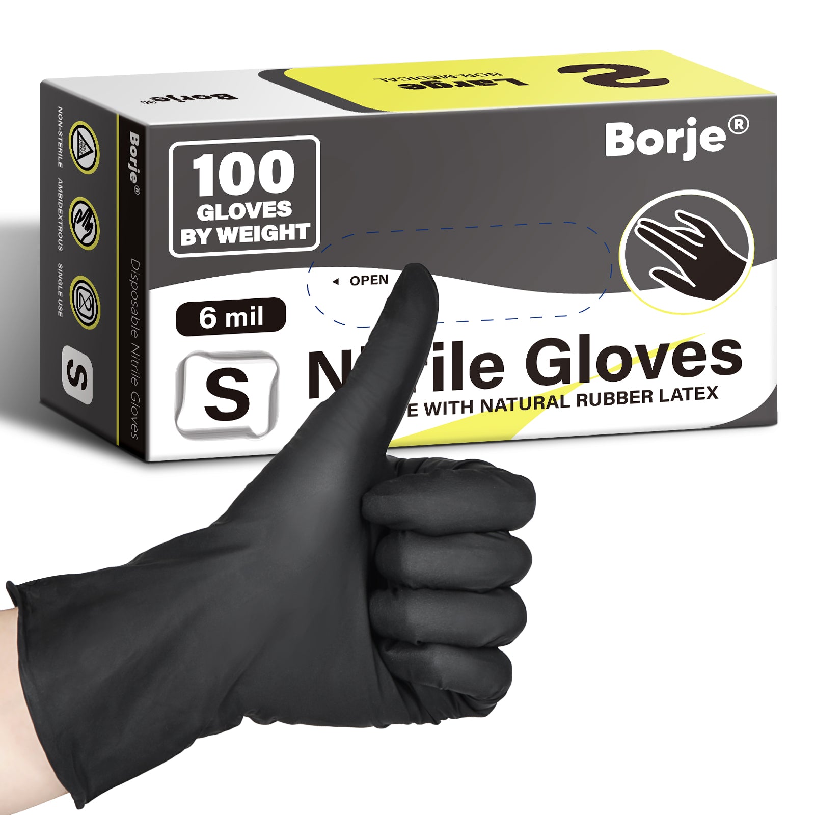 Borje® - 100 Pcs Nitrile Disposable Gloves, 6 Mil, Black, Latex Free, Powder-Free, Mechanic, Food Safe, Cooking, Cleaning