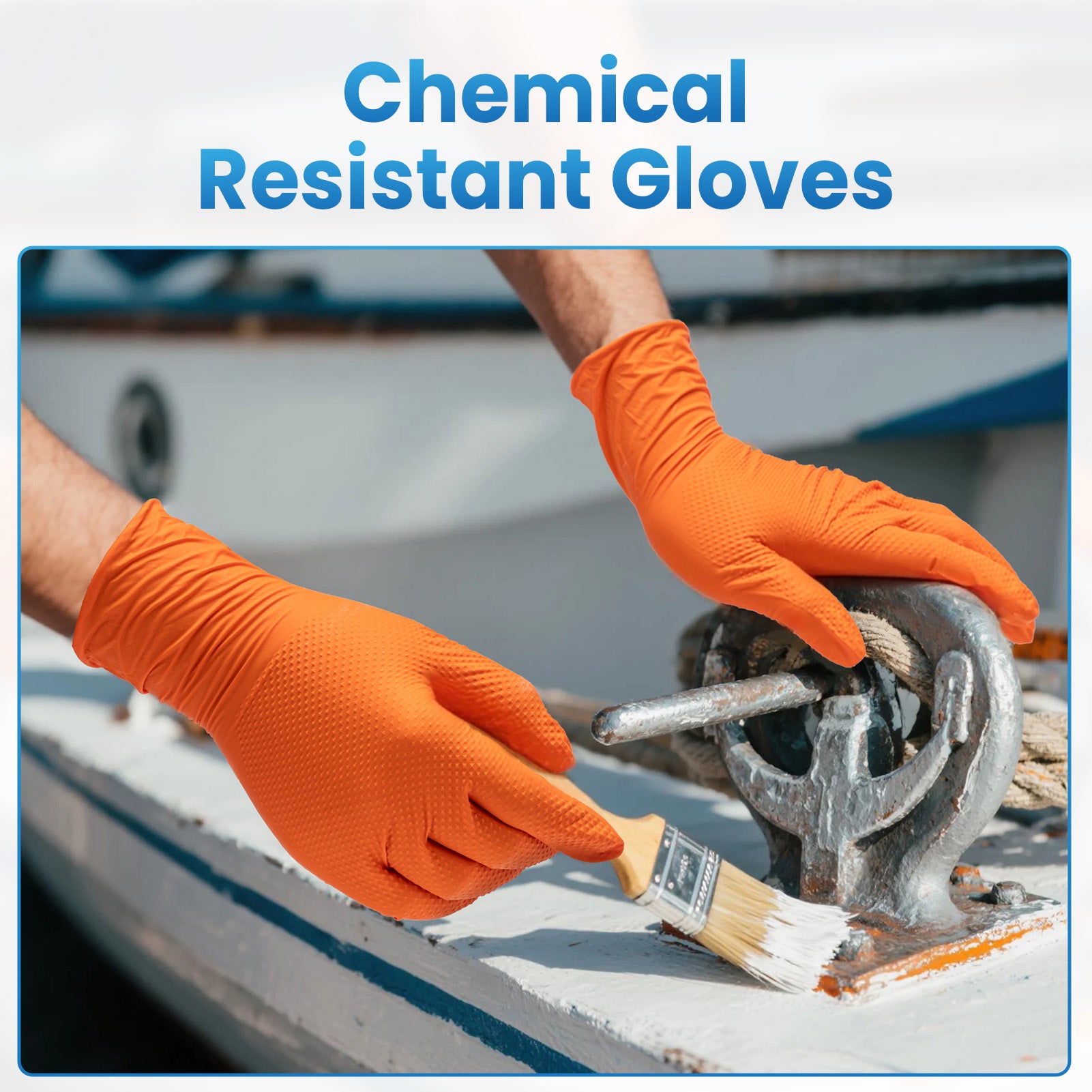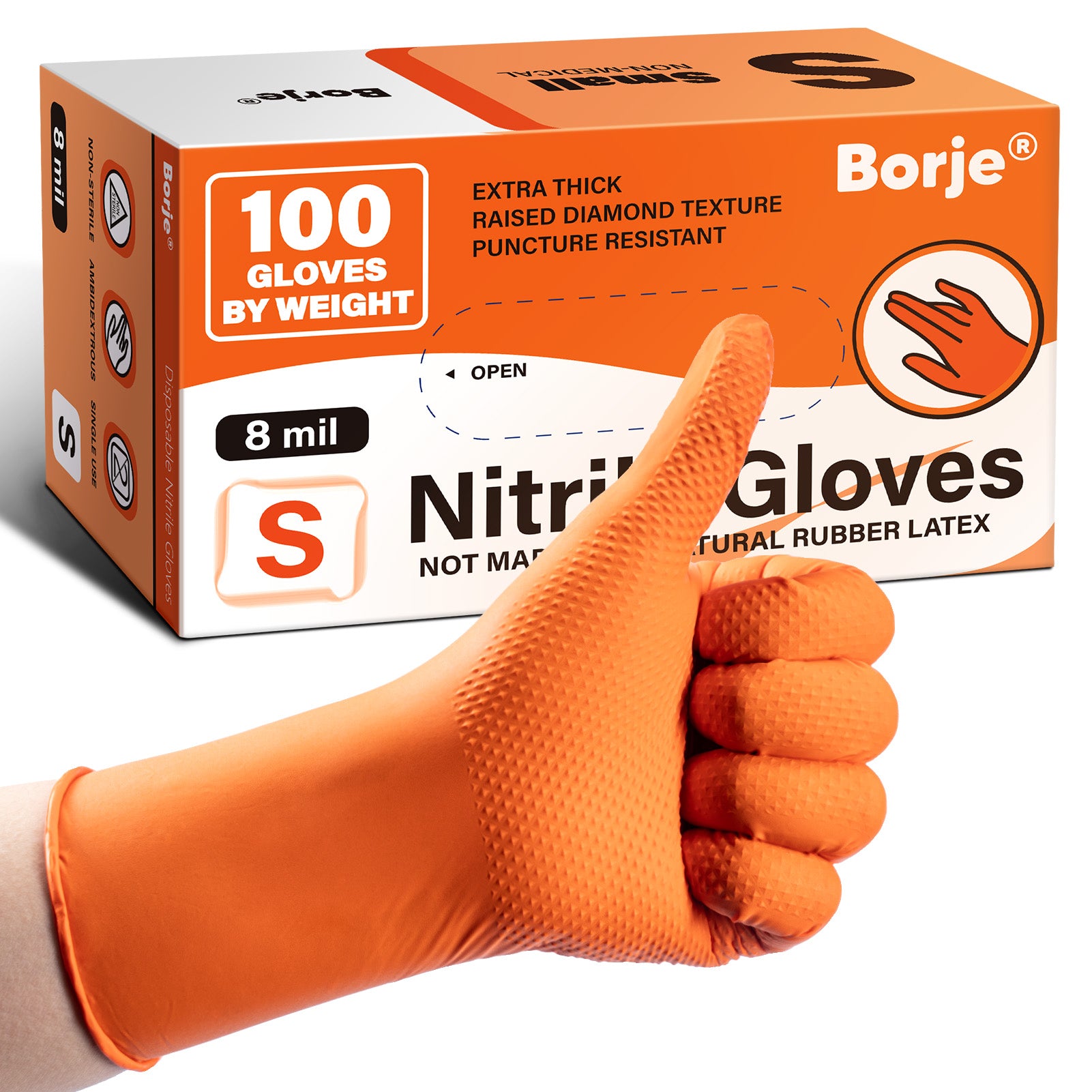 Borje® - 100 Pcs Nitrile Disposable Gloves, 8 Mil, Orange, Latex Free, Powder-Free, Diamond Texture, Mechanic